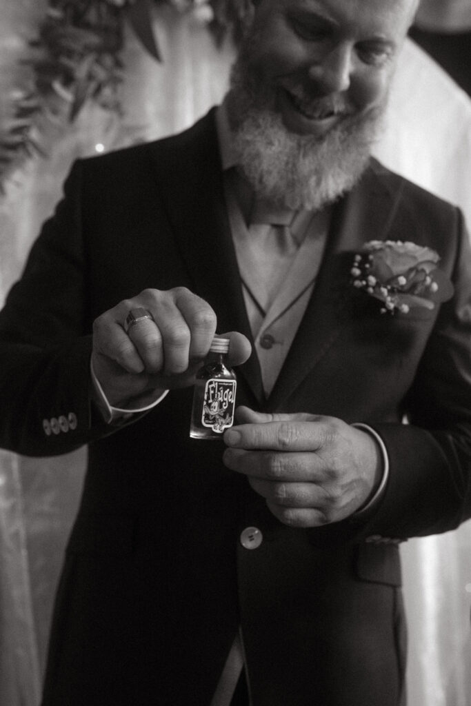 Pas na het diner was het tijd voor de ceremonie. Niet geleid door een trouwambtenaar, maar door één van hun beste vrienden. Persoonlijk, warm en vol verhalen die alleen echte vrienden kunnen vertellen.